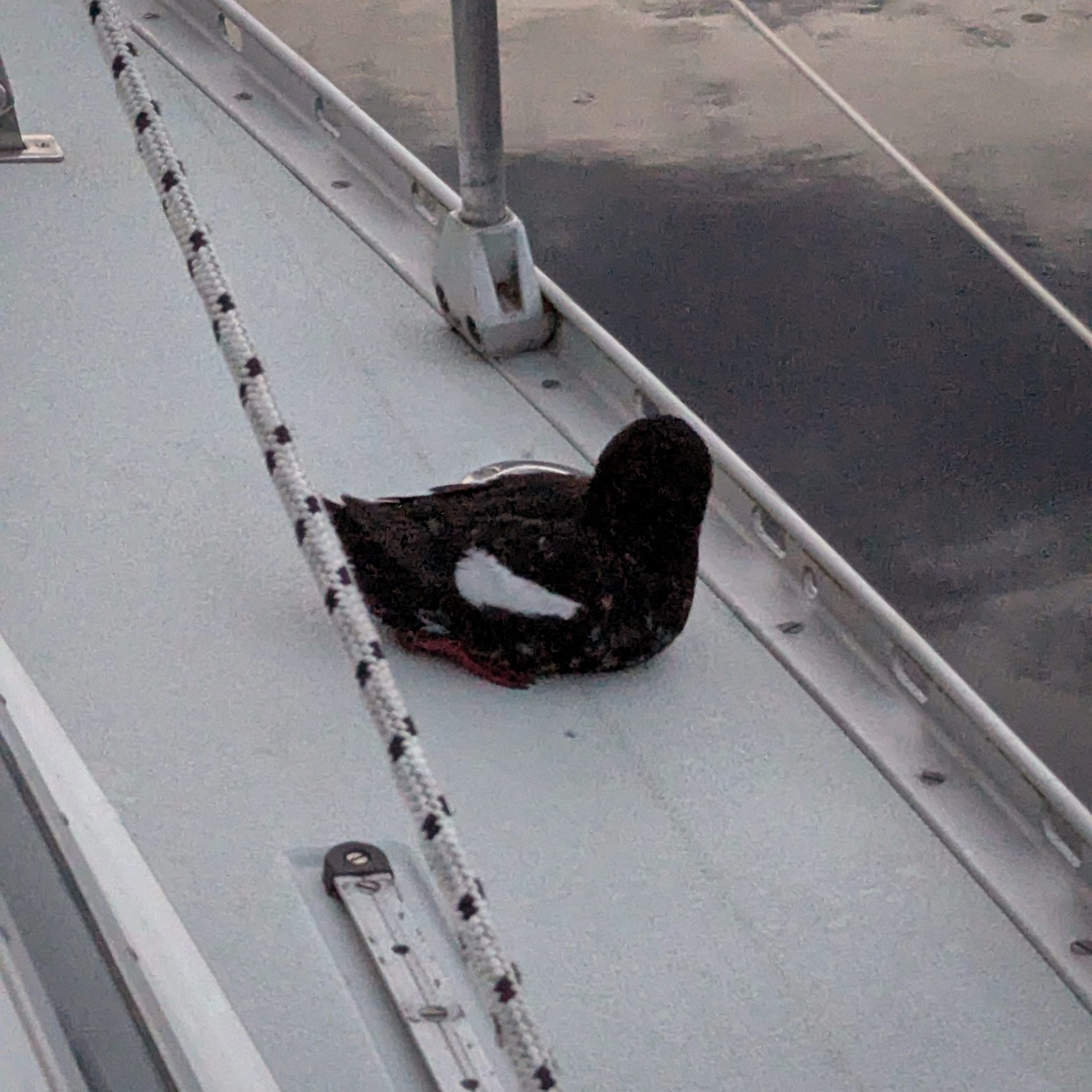 A guillemot spent the night on the deck.